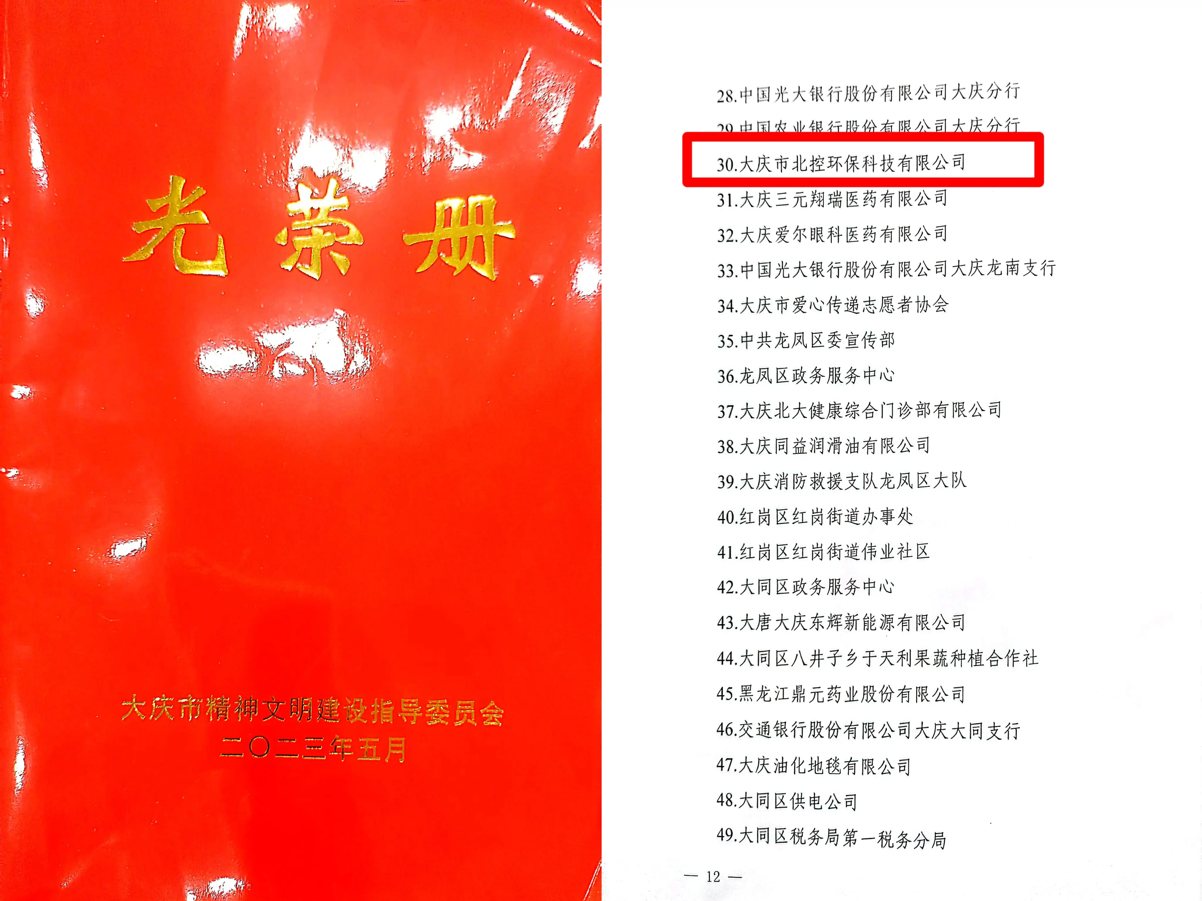 大慶市北控環保科技有限公司喜獲“市級文明單位”榮譽 2023-09-22