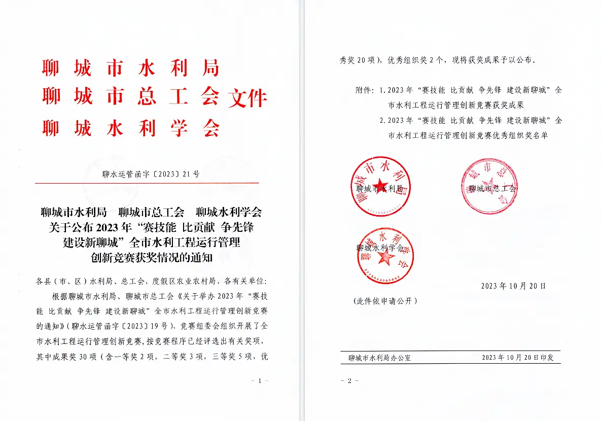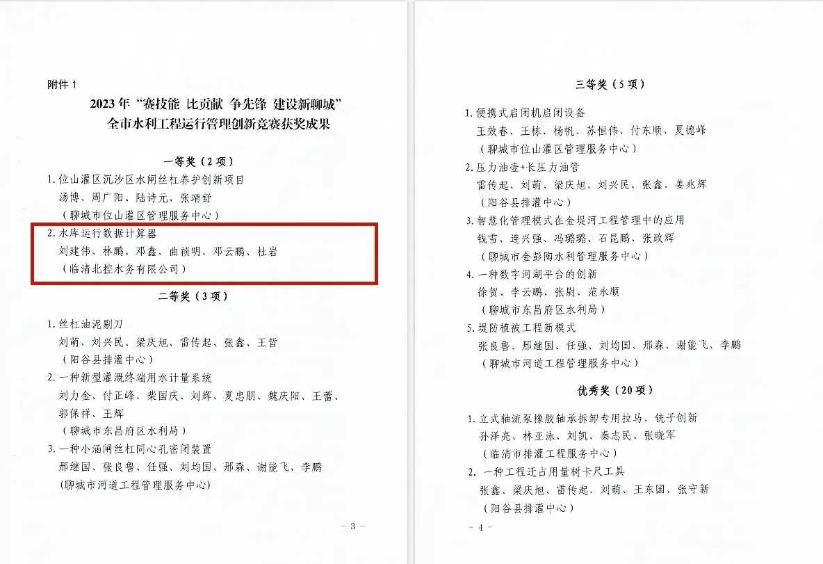 近日,在聊城市2023年“賽技能 比貢獻 爭先鋒 建設新聊城”全市水利工程運行管理創新競賽中,北控水務旗下臨清北控水務有限公司提報的“水庫運行數據計算器”項目經過層層選拔突圍而出,榮獲創新競賽一等獎。