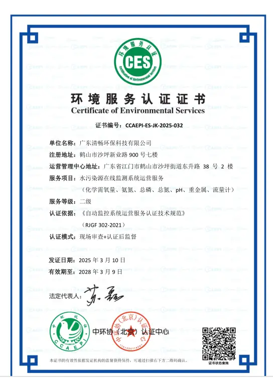 廣東清暢環(huán)保公司在環(huán)境監(jiān)測(cè)領(lǐng)域耕耘多年,憑借對(duì)技術(shù)研發(fā)與服務(wù)體系優(yōu)化的執(zhí)著投入,于2025年3月10日成功通過(guò)中環(huán)協(xié)(北京)認(rèn)證中心(CCAEPI)的嚴(yán)格審核,榮獲《自動(dòng)監(jiān)控系統(tǒng)運(yùn)營(yíng)服務(wù)認(rèn)證技術(shù)規(guī)范》二級(jí)資質(zhì)認(rèn)證。這一認(rèn)證不僅是對(duì)廣東清暢環(huán)保公司過(guò)往努力的高度認(rèn)可,更是其在行業(yè)內(nèi)綜合實(shí)力與服務(wù)水平的有力證明。