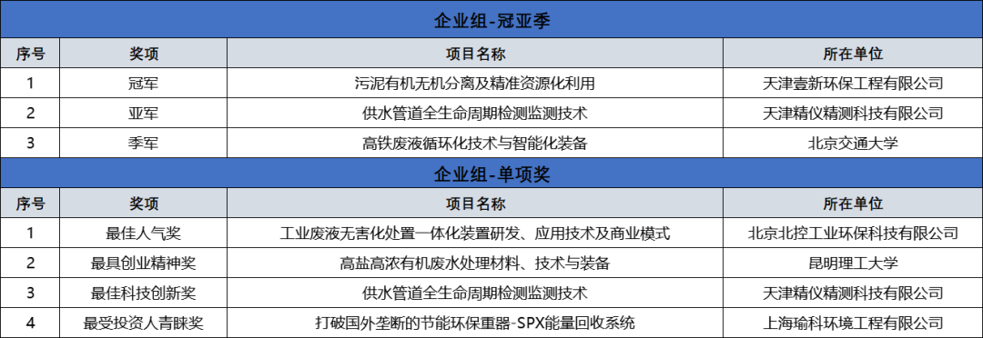 創投大賽中,來自天津壹新環保工程有限公司的污泥有機無機分離及精準資源化利用項目團隊摘得桂冠;天津精儀精測科技有限公司的供水管道全生命周期檢測監測技術獲得亞軍;北京交通大學的高鐵廢液循環化技術與智能化裝備獲得季軍。