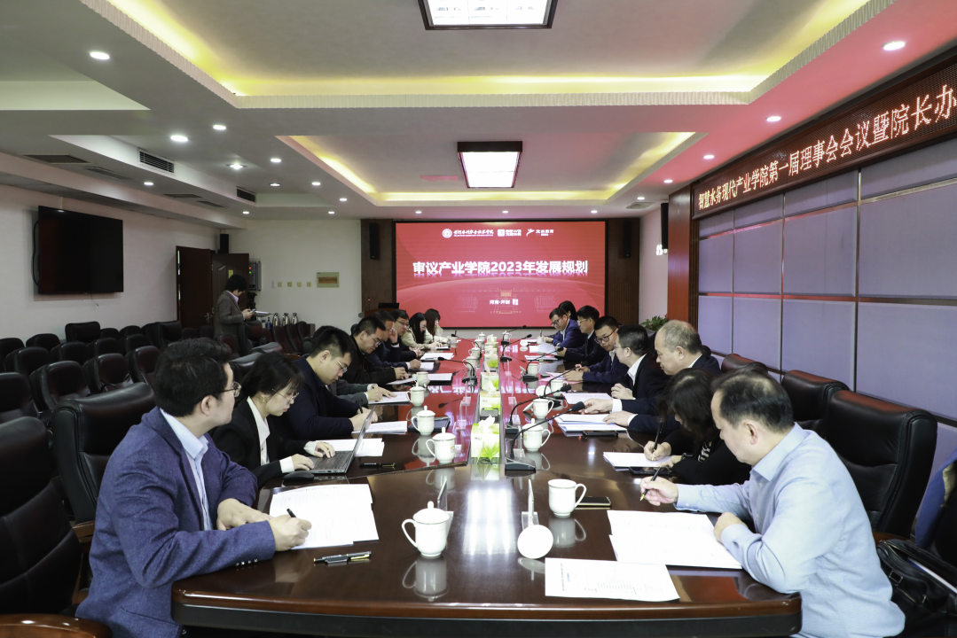 儀式結束后,產業學院召開第一屆理事會會議暨院長辦公擴大會議。產業學院理事長胡昊作關于產業學院章程起草的說明,理事會全體成員審議章程并表決通過。隨后,院長馮峰對產業學院2023年度發展規劃進行匯報,與會成員就計劃開展的師資隊伍建設、新型教材開發、教學方法革新、科研水平提升等八項重點工作進行交流研討,并對產業學院未來建設發展提出建議。
