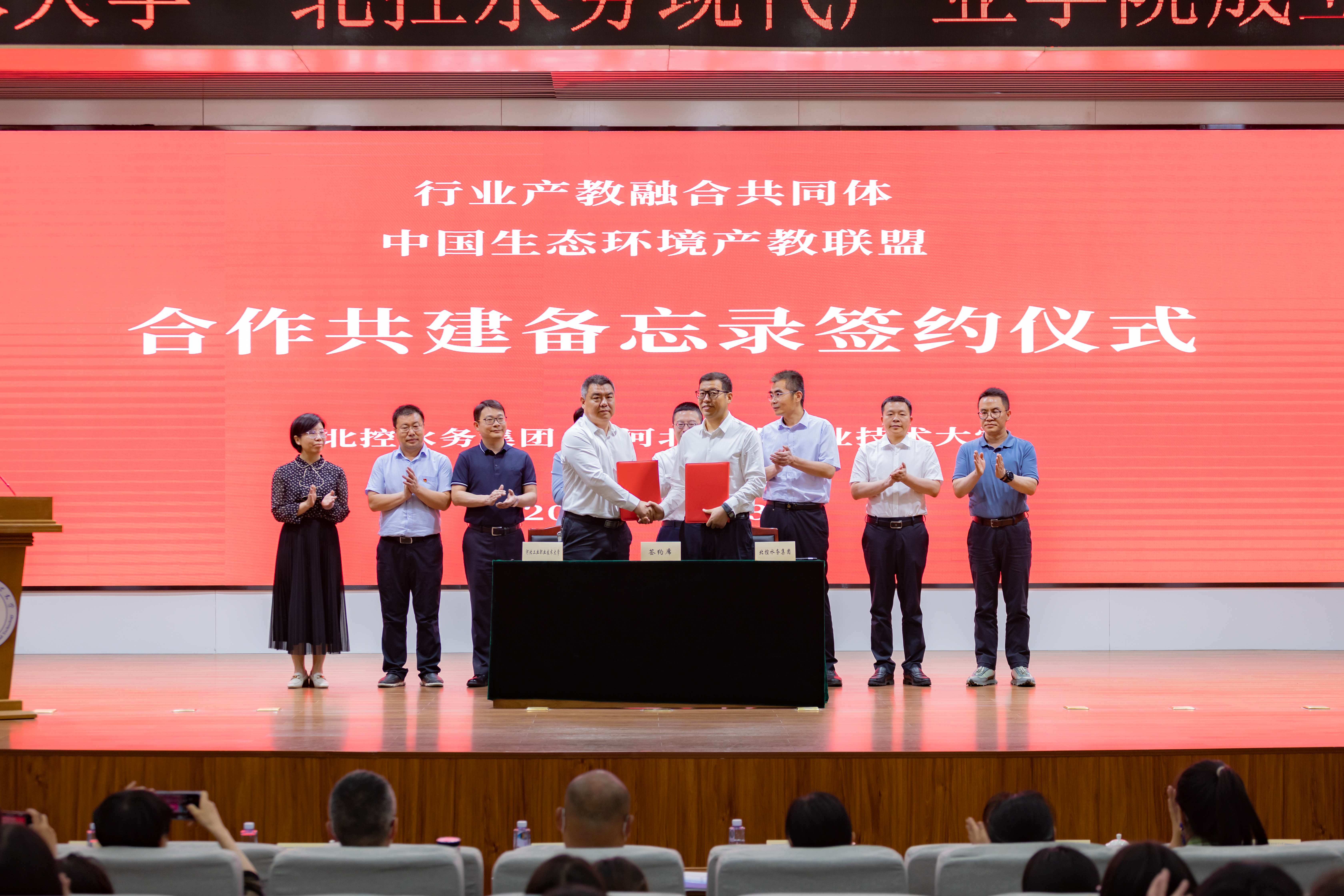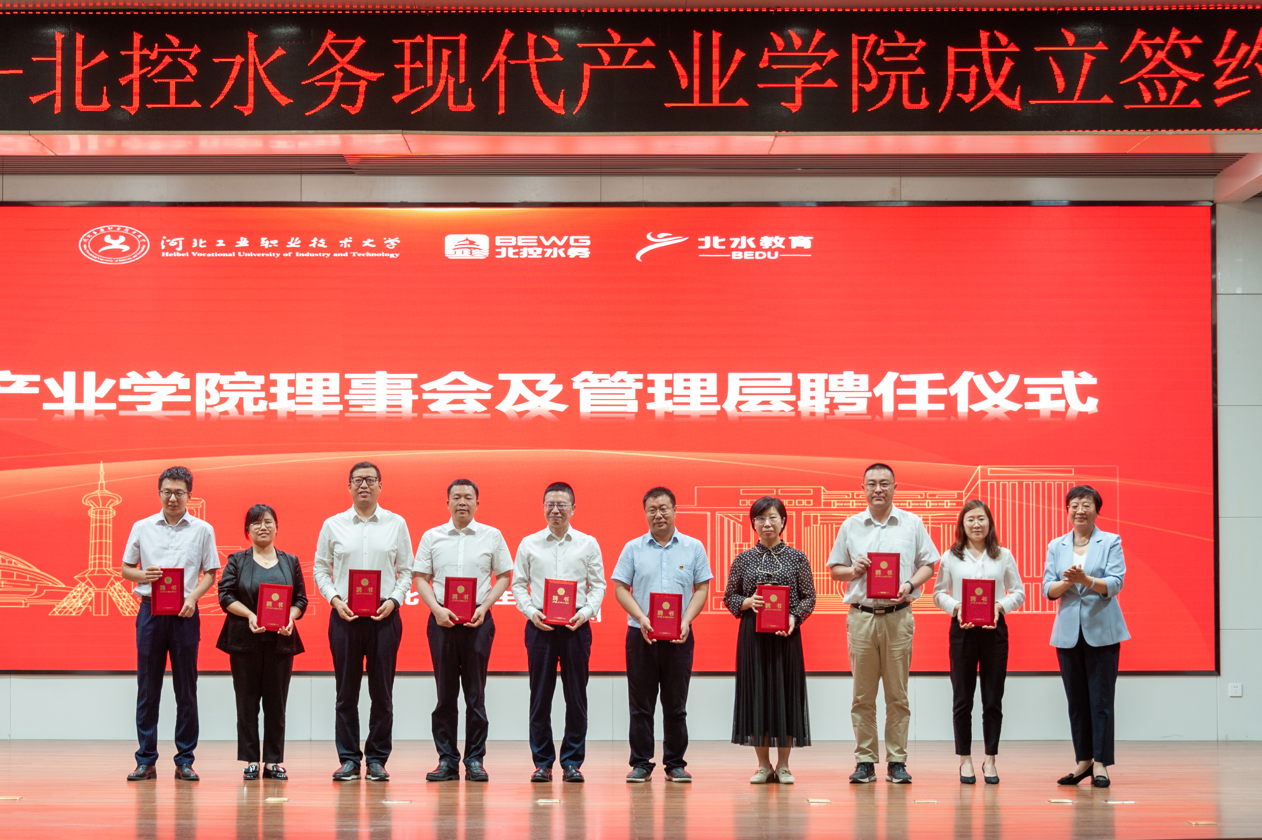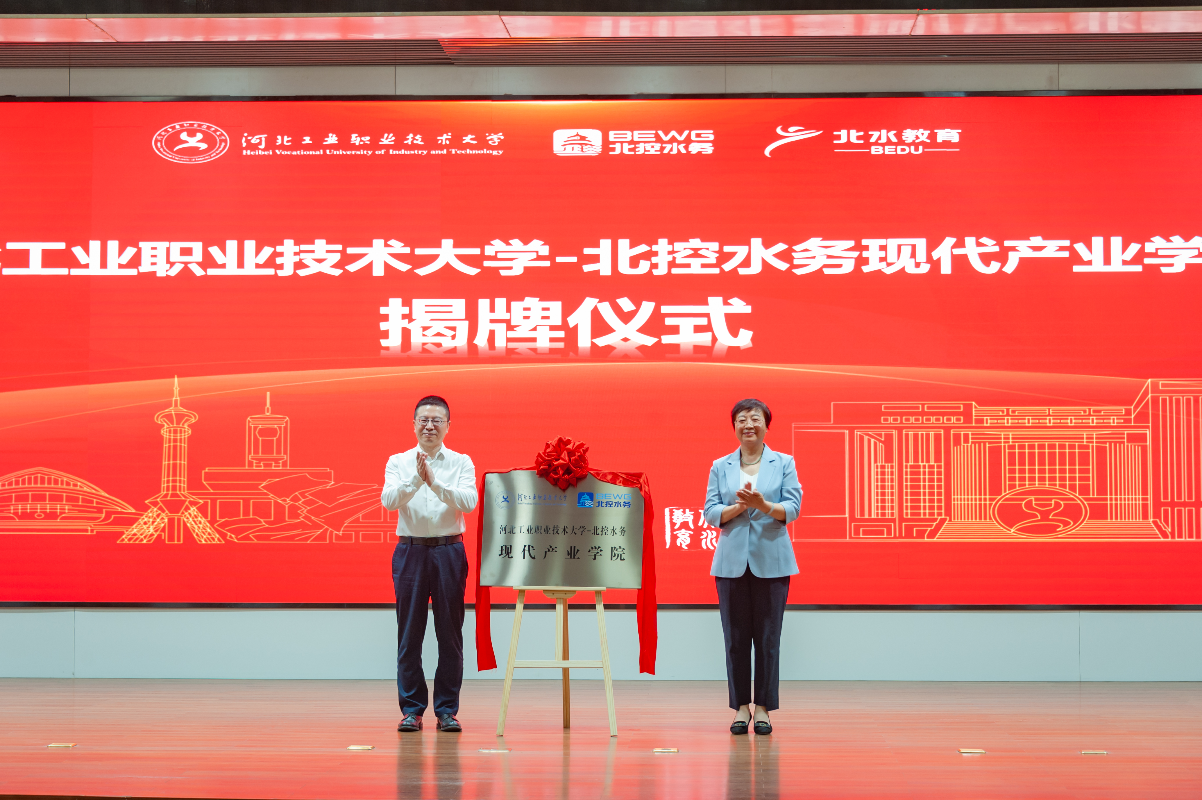 河北省教育廳學(xué)生處副處長周鋒,北控水務(wù)集團高級副總裁于立國、總裁助理兼北部大區(qū)總經(jīng)理黎定高,河北工業(yè)職業(yè)技術(shù)大學(xué)黨委副書記、校長薛曉萍,副校長張福仁,以及校企相關(guān)部門代表出席成立儀式。