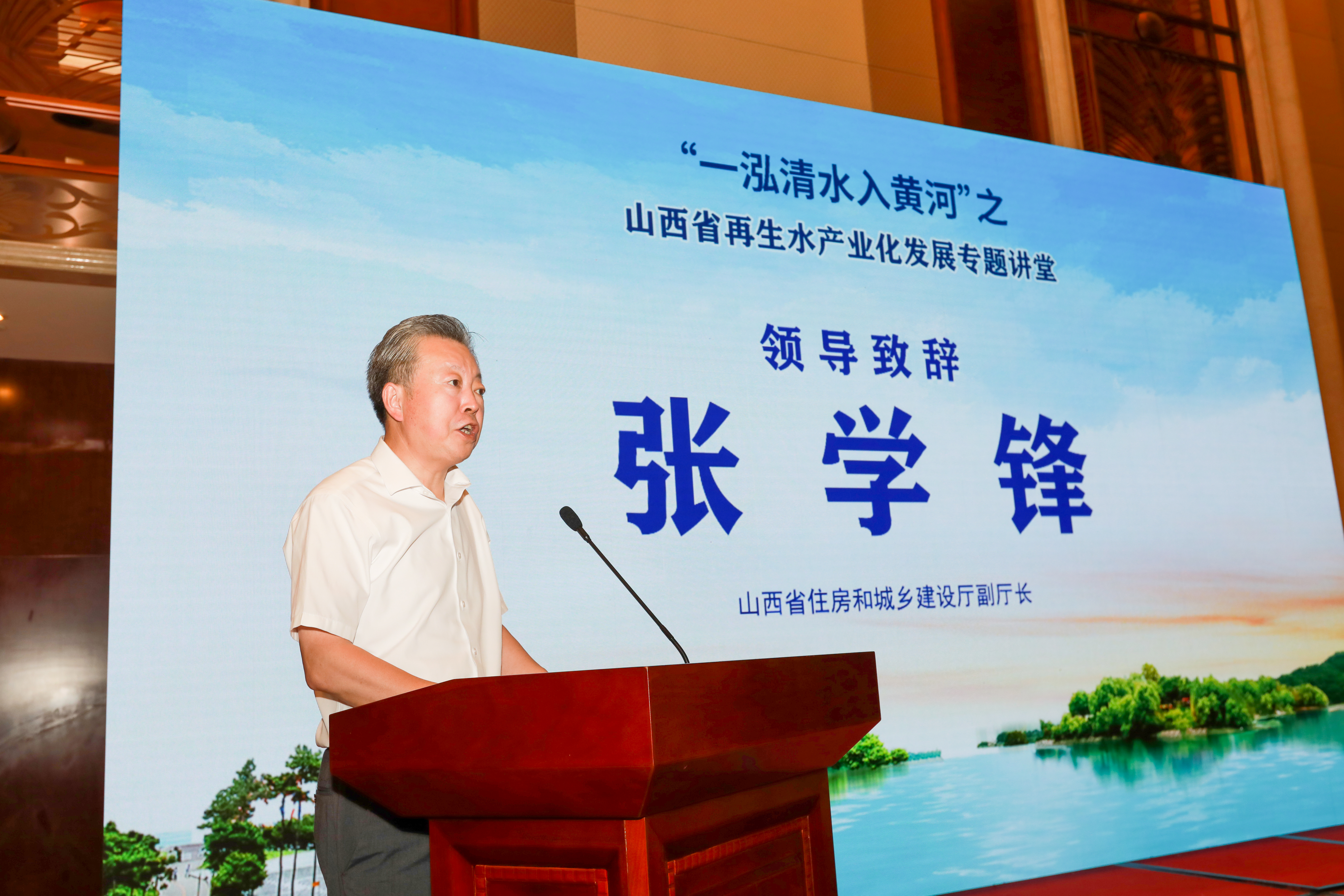 山西建設大講堂是面向住房城鄉(xiāng)建設產、學、研、用領域,以解讀最新政策、推廣先進技術、分享發(fā)展經驗為主旨,加快住建領域科技成果轉化應用,推動山西省住房城鄉(xiāng)建設事業(yè)創(chuàng)新發(fā)展、綠色發(fā)展、高質量發(fā)展的專業(yè)交流論壇。第七期建設大講堂由山西省住建廳副廳長張學鋒主持,聚焦“一泓清水入黃河”之山西省再生水產業(yè)化發(fā)展專題,特邀水務行業(yè)國家級專家進行專題報告,著眼于黃河流域治理的新理念,圍繞再生水利用工作中遇到的難點、堵點、痛點進行深入分析和經驗分享,以求打開山西省再生水產業(yè)發(fā)展的新思路。