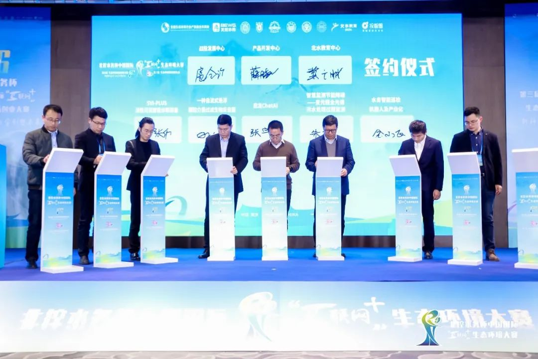 閉幕式上,北控水務戰投發展中心、產品開發中心、北水教育中心負責人與11個優秀項目進行簽約,致力打造以賽促教、以賽促創、以賽促轉的成果,為創新與人才保駕護航。