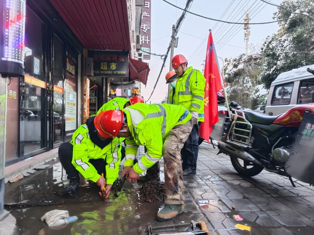 在湖南新化,接到搶險需求后,項目公司立即開展供水應(yīng)急搶修調(diào)度工作,組織搶修小組迅速反應(yīng),黨員先鋒隊沖鋒在前,迎著冰刀霜劍,共同抗擊寒潮風(fēng)險,為市民提供生活用水保障。