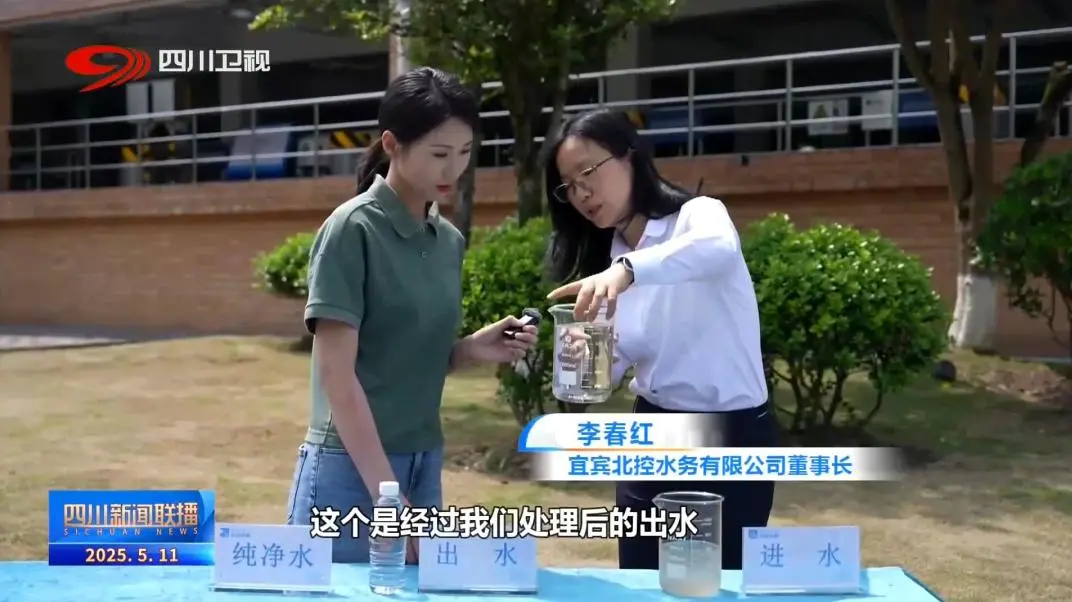 宜賓北控水務有限公司董事長李春紅:這個是我們污水處理廠的進水,這個是經過我們污水處理后的出水,你看這兩個對比已經相當明顯。
